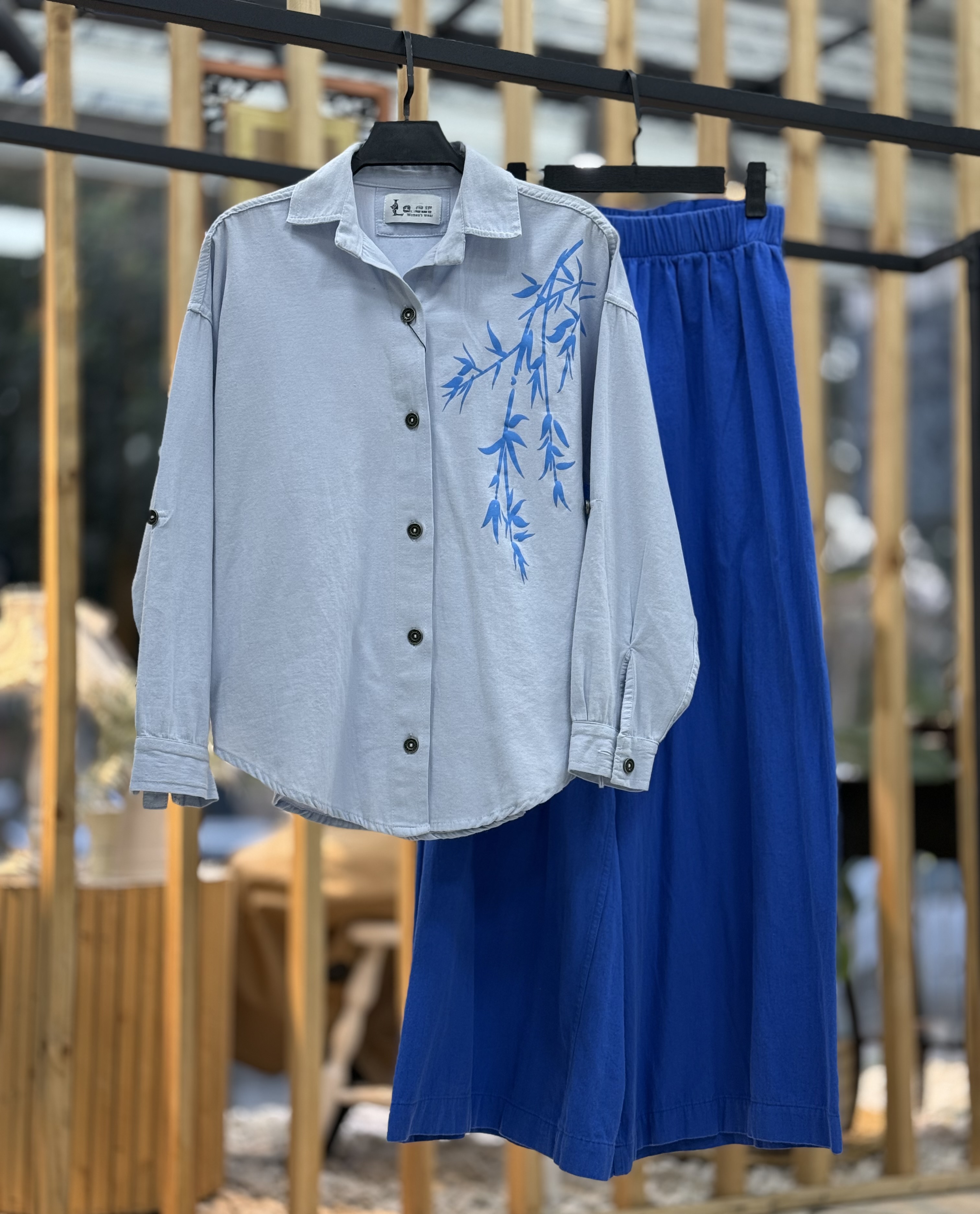 شومیز یخی شلوار آبی