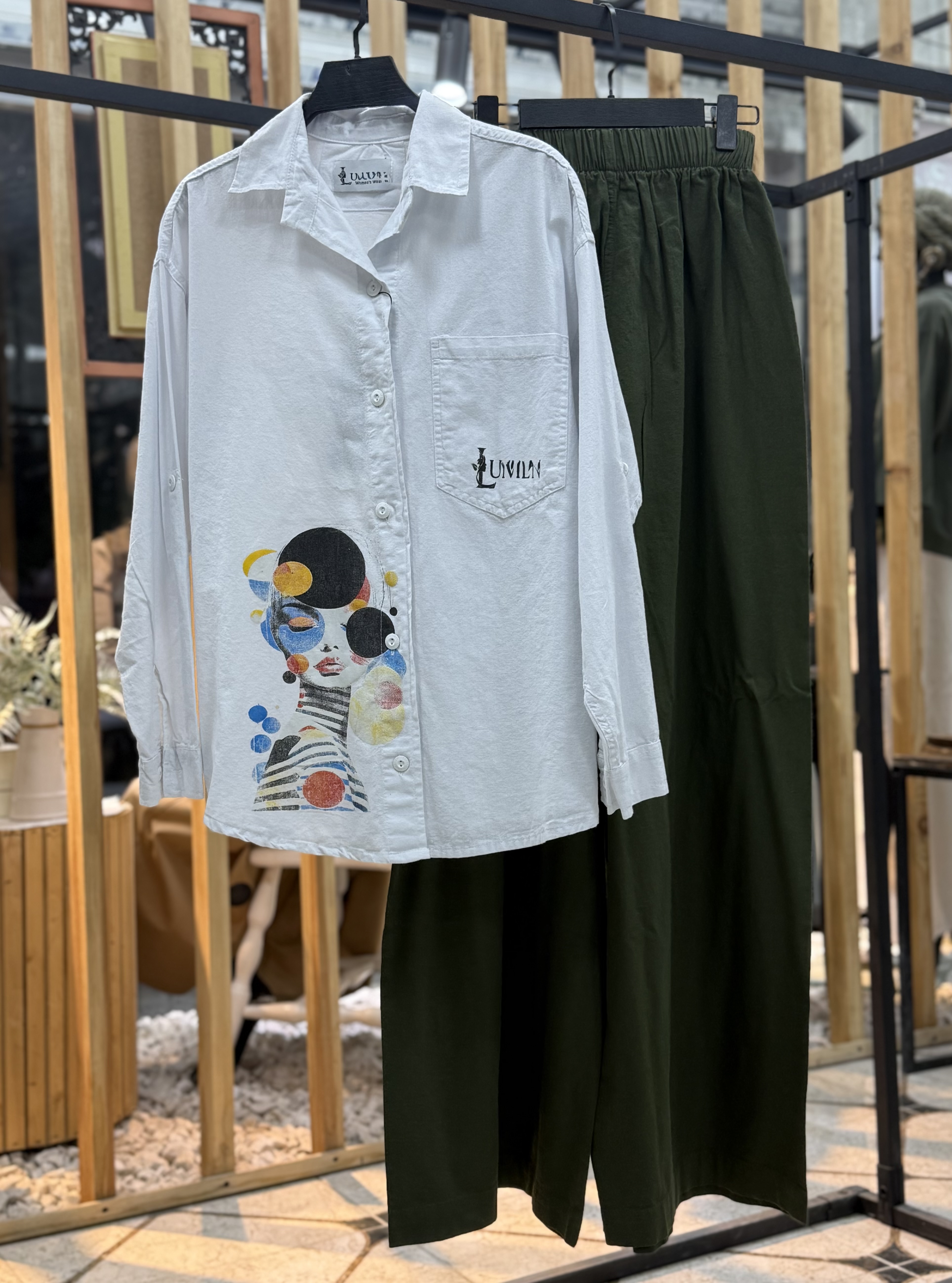 شومیز سفید شلوار سبزتیره